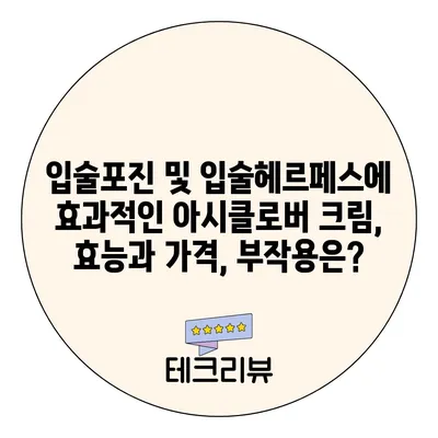 입술포진 및 입술헤르페스에 효과적인 아시클로버 크림, 효능과 가격, 부작용은?