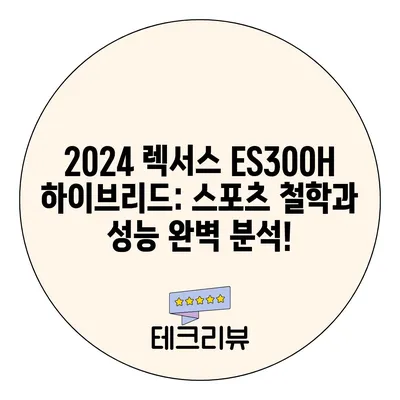 2024 렉서스 ES300H 하이브리드: 스포츠 철학과 성능 완벽 분석!