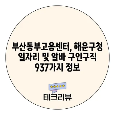 부산동부고용센터, 해운구청 일자리 및 알바 구인구직 937가지 정보