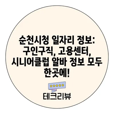 순천시청 일자리 정보: 구인구직, 고용센터, 시니어클럽 알바 정보 모두 한곳에!