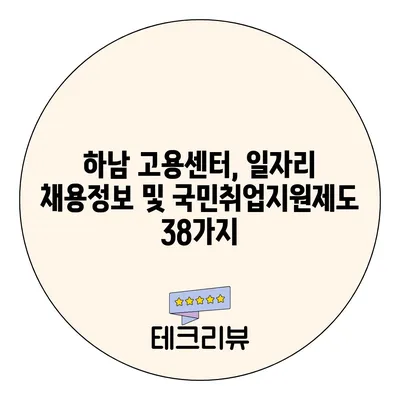 하남 고용센터, 일자리 채용정보 및 국민취업지원제도 38가지