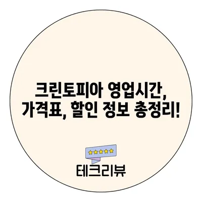 크린토피아 영업시간, 가격표, 할인 정보 총정리!