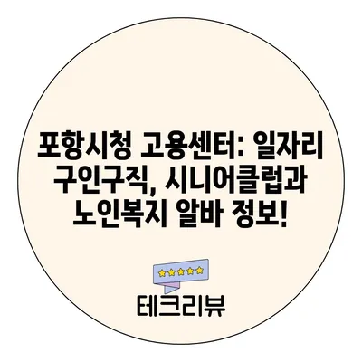 포항시청 고용센터: 일자리 구인구직, 시니어클럽과 노인복지 알바 정보!
