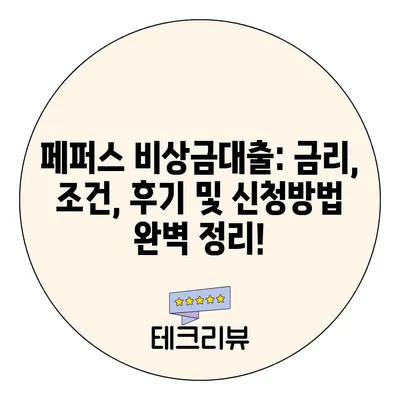 페퍼스 비상금대출: 금리, 조건, 후기 및 신청방법 완벽 정리!